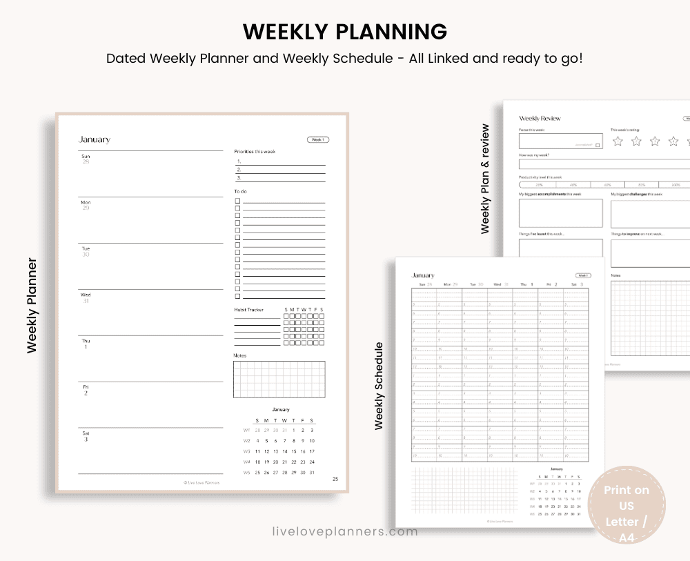 📅 Sunday Start and Monday Start Dated 2026 Printable Planner (US Letter and A4)