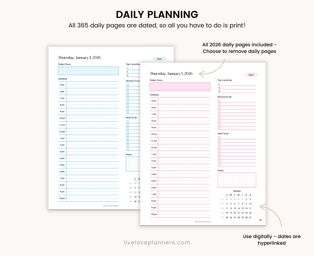 Stay focused and supercharge your productivity in 2026 with this all-in-one 2026 Printable Planner bundle, perfect for both digital and printable use!