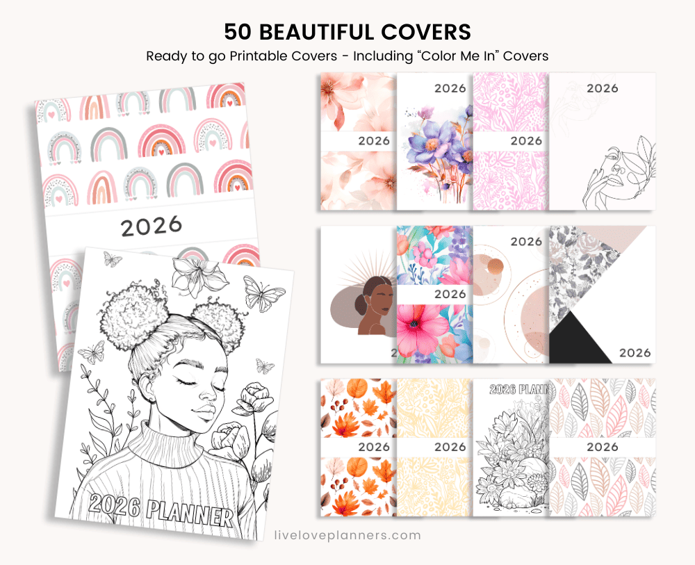 🎨 50 Printable Planner Covers, includes 8 color-me-in designs