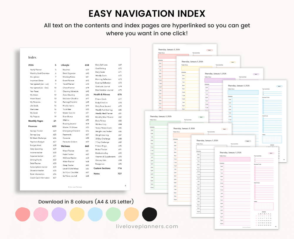 ✨ Here’s what’s included in your 2026 Printable Planner: